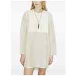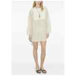 ivory pleated panel long sleeves round neck high-low hem Linen and silk tunic