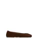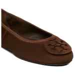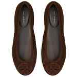 dark cocoa suede upper round toe flat sole logo detail slip-on style Minnie Travel ballets