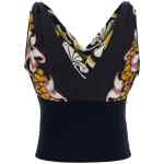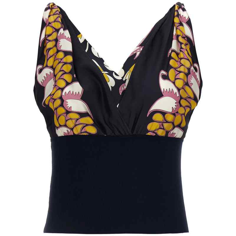 Printed silk and knit top with v-neck. Size and Fit – true to size fit