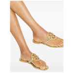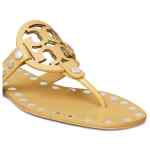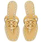 cantucci yellow leather upper metal studs cut-out detail T-bar strap flat sole Studded Miller leather flat sandals