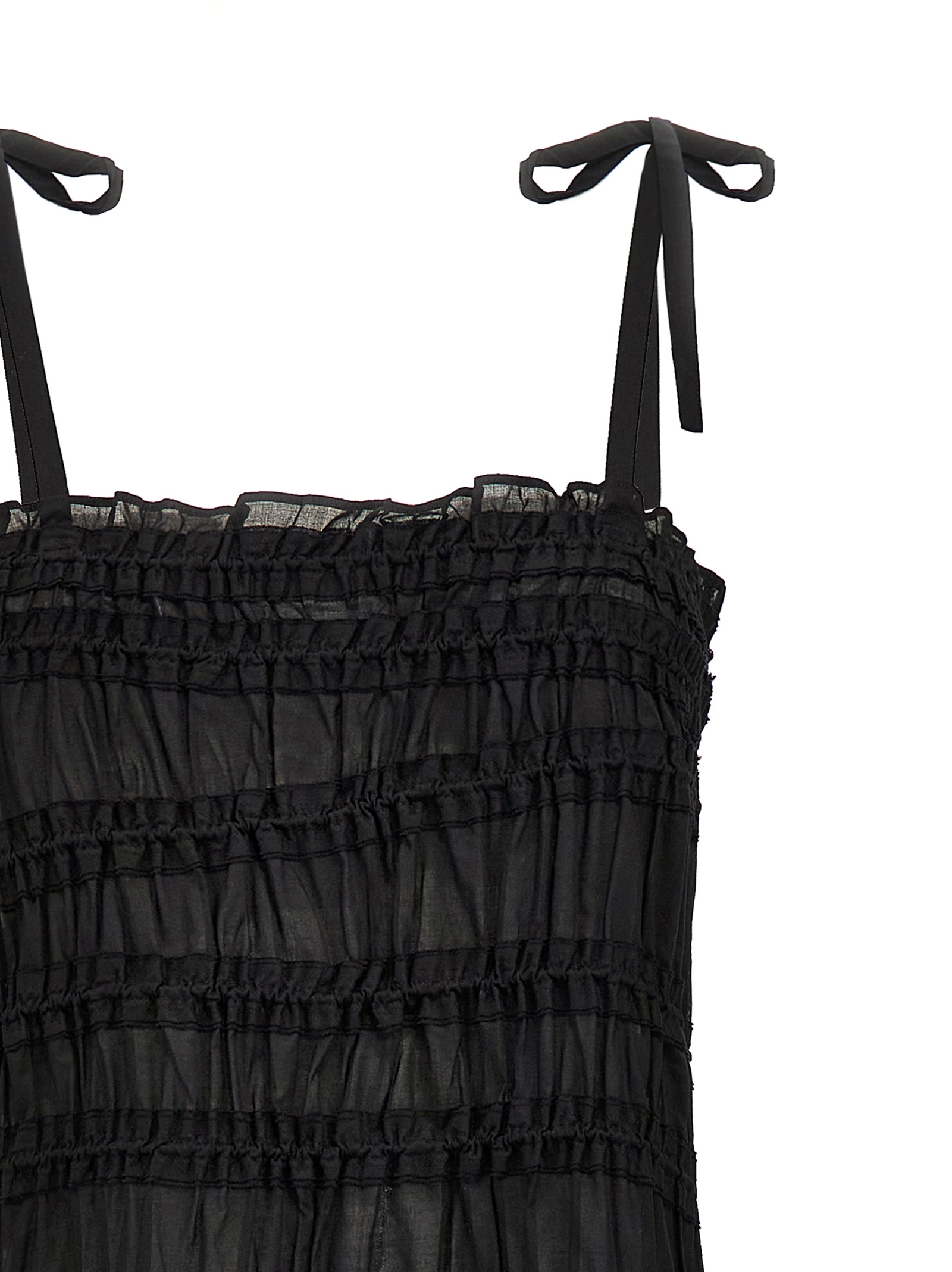 ‘Shoulder Tie’ dress in ruffled cotton with adjustable shoulder straps.