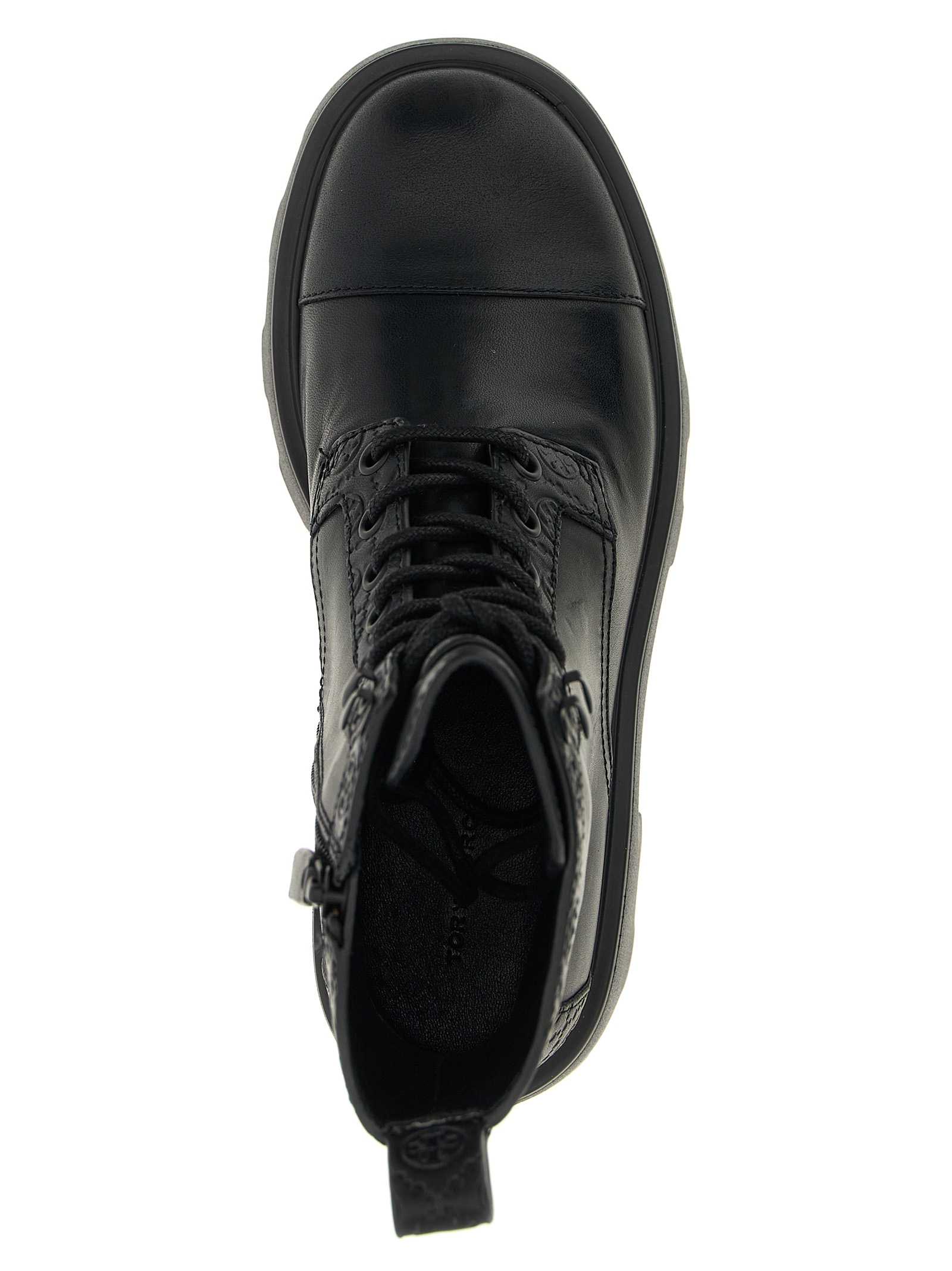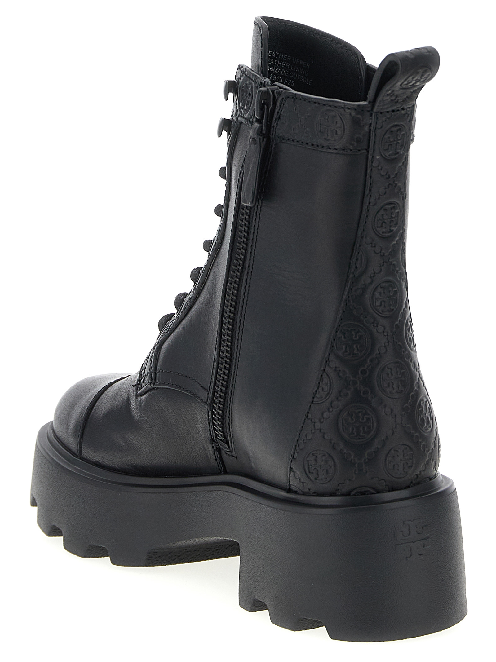 Leather combat boots with tone-on-tone embossed ‘T Monogram’ details, front lace closure and side zip, shiny nappa leather lining, EVA tank sole