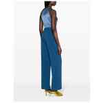 Ink blue mélange effect tailored cut high-waisted concealed front button, hook and zip fastening two diagonal pockets to the sides two rear welt pockets pressed crease Tailored trousers