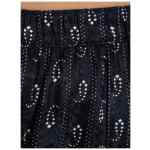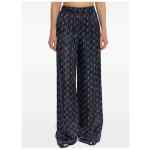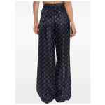 navy blue paisley print elasticated waistband straight hem all-over pattern Jacquard silk trousers