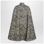Wool cape by Valentino with all-over animal print, featuring stand collar, button closure, and two side pockets with V Gold detail.