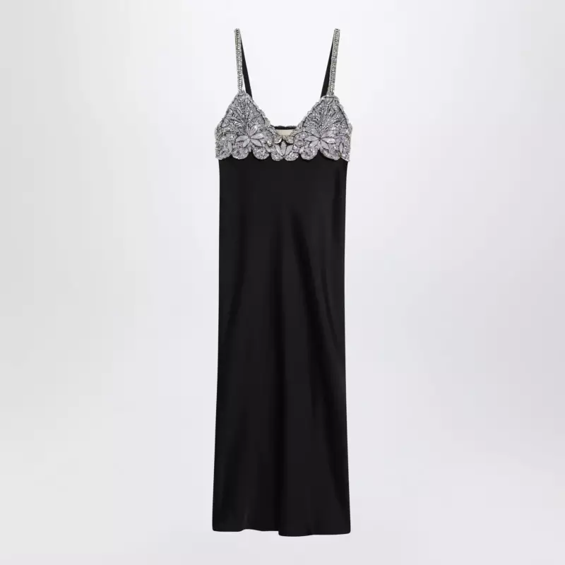 Valentino Black midi dress with lace and crystals