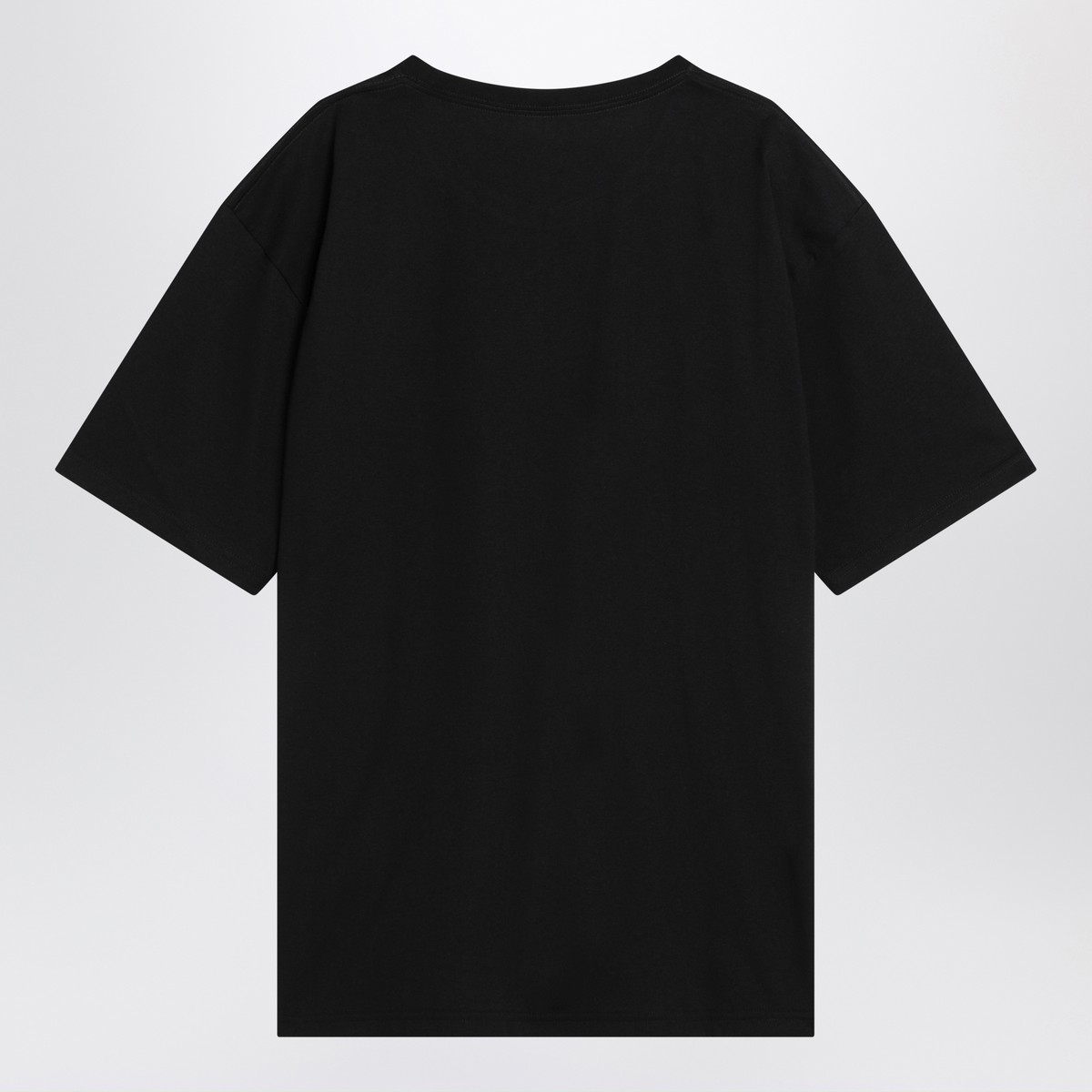 Valentino black cotton crew neck T-shirt, featuring short sleeves, Le Chat de la Maison print on the chest in contrasting butter colour and regular fit.