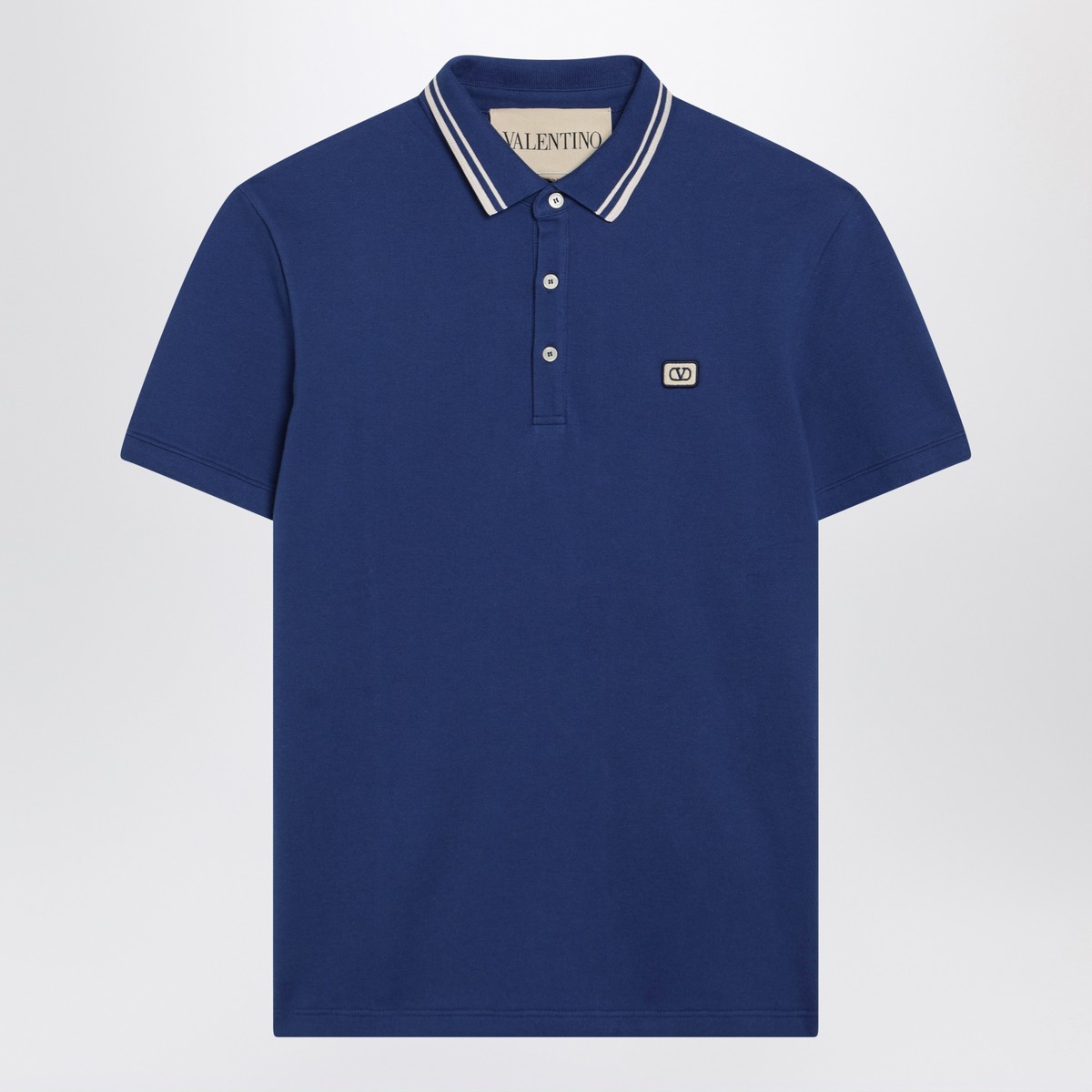 Valentino blue cotton polo shirt, featuring short sleeves, front buttons and a Vlogo patch on the chest.