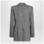Valentino ivory and black bouclé natté wool double-breasted jacket, featuring classic lapels, long sleeves with buttoned cuffs, front button closure, two front flap pockets, one chest welt pocket, back vent and regular fit.