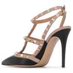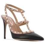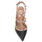 Ankle closure with buckle, gold-tone Rockstud decoration, pointed design and stiletto heel. Material: leather. Rockstud leather pumps