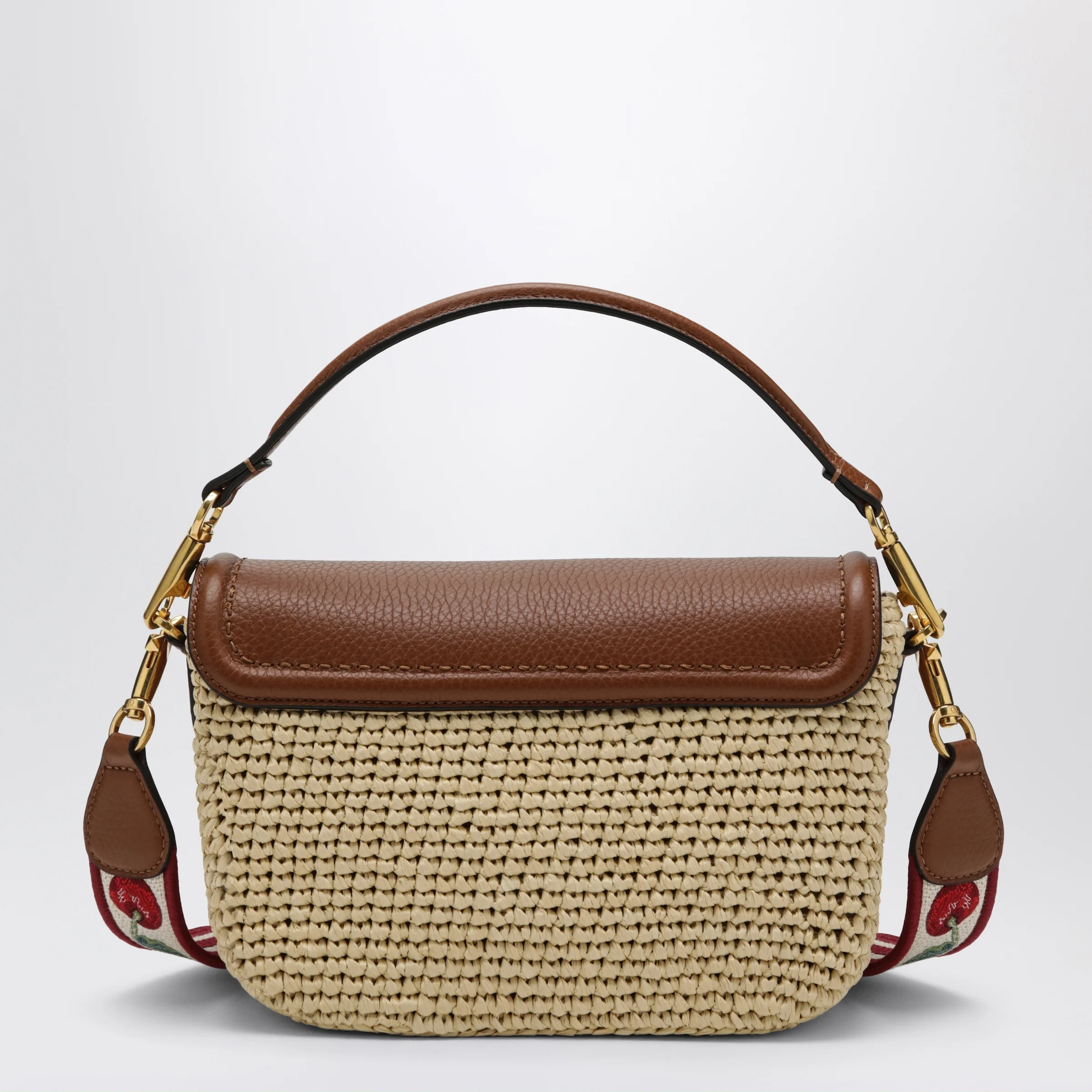 Valentino Garavani Alltime raffia and leather bag with Cherryfic embroidered strap