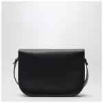 Valentino Garavani black calfskin crossbody bag, featuring a front flap with buckle, magnetic closure, gold-tone metal VLogo Signature detail on the front, two card slots and a flat zip pocket.