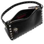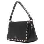 black calf leather grained texture gold-tone Rockstud embellishment single top handle detachable shoulder strap logo print to the front main compartment internal card slot internal logo patch full lining top zip fastening hook fastening Rockstud small leather shoulder bag