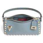 Valentino bag light blue gold-tone studs top zip fastening hook closure removable shoulder strap internal card slot The full look includes Valentino Garavani accessories. Rockstud small leather shoulder bag