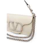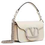 ivory white leather VLogo Signature silver-tone hardware Swarovski crystal embellishment chain-link shoulder strap single rounded top handle foldover top concealed magnetic fastening Locò small leather shoulder bag