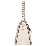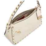 cream white leather silver-tone Rockstud detailing single top handle adjustable detachable shoulder strap top zip fastening internal logo patch internal slip pocket Rockstud small leather shoulder bag