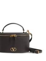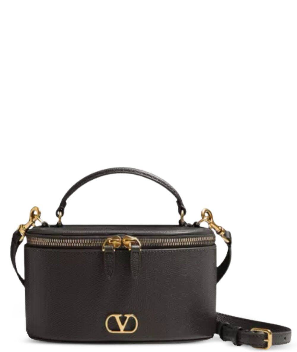black gold-tone hardware adjustable and removable strap top handle logo detail zip fastening VLogo Signature leather vanity case
