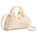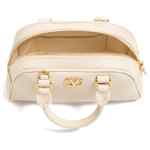 neutrals, VLogo Signature hardware, logo and hardware in antique brass finish, top handles, zipper closure, detachable ajustable shoulder strap, one internal card slot. VLogo Signature leather mini bag