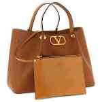 brown smooth finish fixed handles studded signature V-logo to the front detachable clutch adjustable and removable shoulder strap VLogo Signature medium leather tote