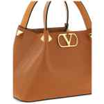 brown leather signature V-logo fixed handles adjustable and removable shoulder strap VLogo Signature small leather tote bag