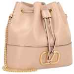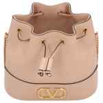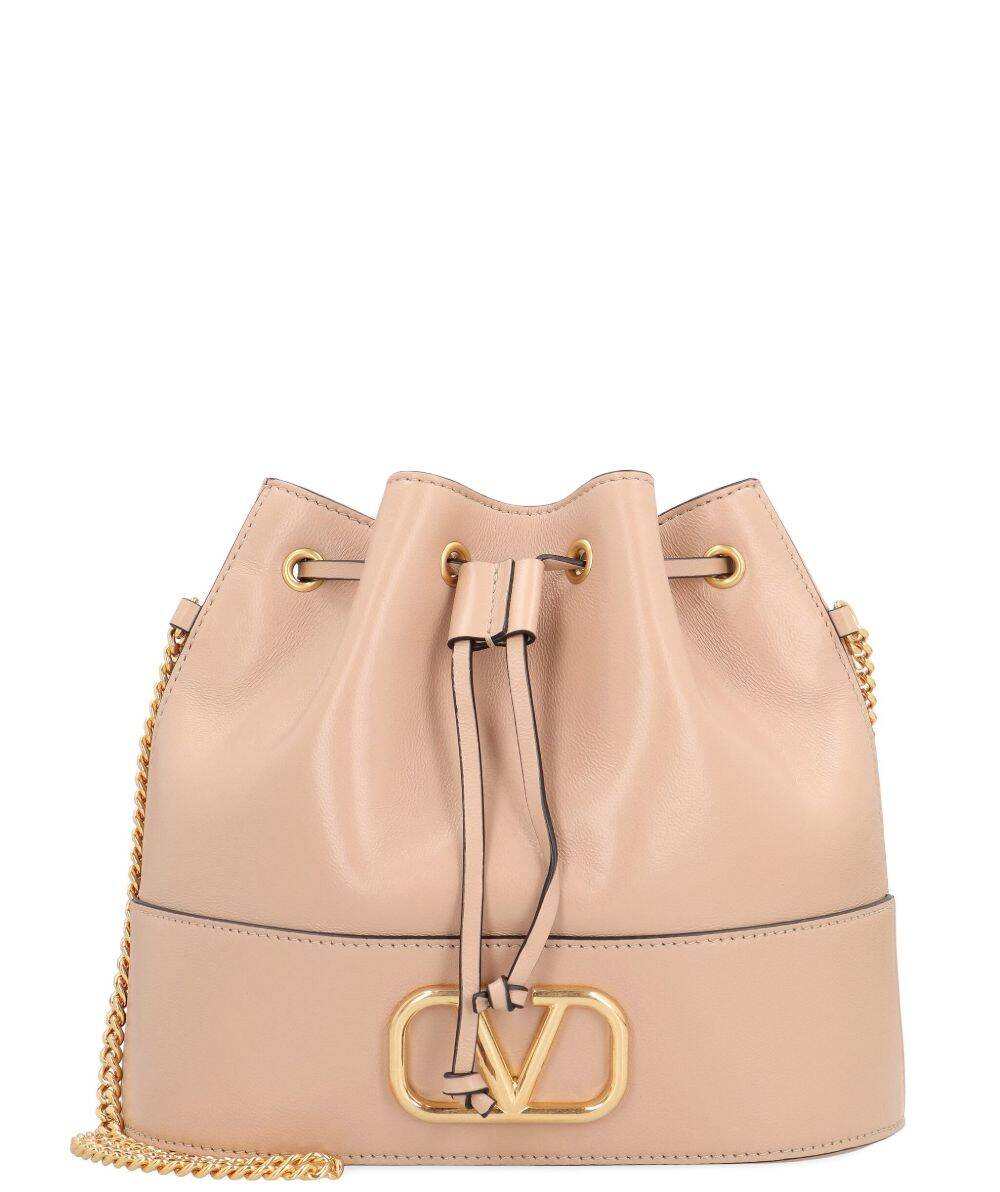 light pink gold-tone metal hardware chain shoulder strap drawstring closure leather VLogo Signature leather mini bag