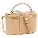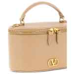 beige grained-texture leather logo hardware fixed top handle adjustable and removable shoulder strap zip closure VLogo Signature leather vanity case
