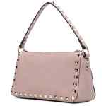 powder pink leather signature Rockstud embellishment pebbled texture single rounded top handle top zip fastening twist-lock fastening main compartment Rockstud small leather shoulder bag