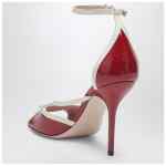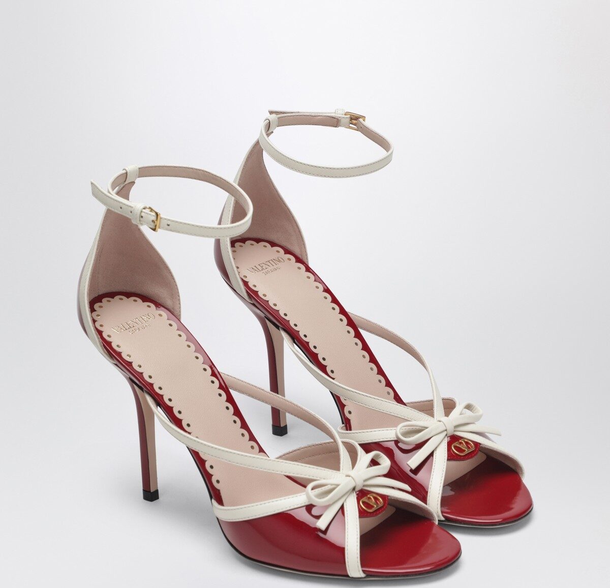 Valentino Garavani sandals in red and ivory kidskin and patent leather, featuring an antique-brass finish VLogo Signature detail on the front, bow detail, adjustable ankle strap, high heel and leather sole.