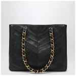 Large Valentino Garavani shopping bag in black chevron nappa featuring chain handles with woven leather, antique-brass VLogo Signature metal detail on the front, magnetic closure, one flat internal pocket and one zip pocket.