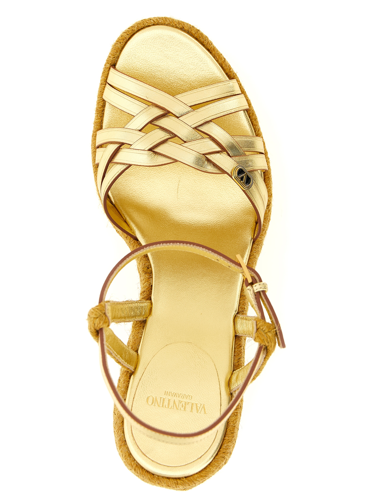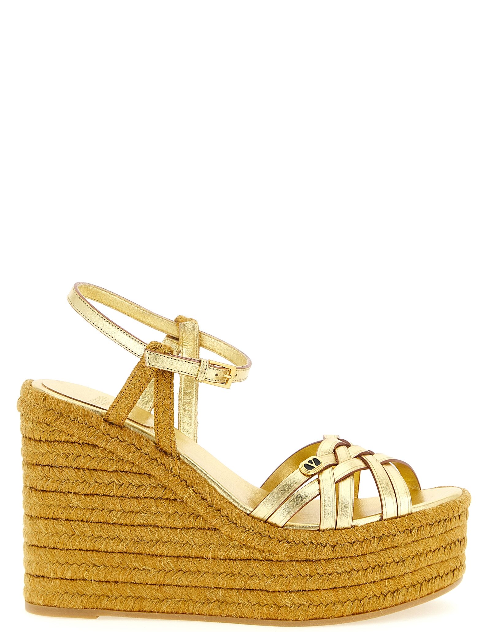 ‘Bribri’ laminated calf leather espadrilles, front braided straps with side enameled metal VLogo Signature, adjustable ankle strap, rope wedge, rubber sole.