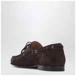 Valentino Garavani loafers in brown suede, featuring a square toe, lace-up fastening with gold-finish VLogo Signature detail on the side and leather sole.