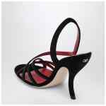 Valentino Garavani sandal in black velvet, featuring an interlaced design, rear VLogo Signature in gold-finish brass, strap with elastic insert, and curved heel.