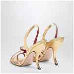 Sandal by Valentino Garavani in gold leather, featuring interwoven design, VLogo Signature in gold-finish brass on the back, ankle strap with elastic insert, and curved heel.