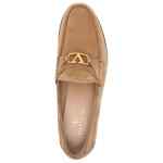 beige gold-tone hardware logo plaque round toe flat sole VLogo Signature leather loafers