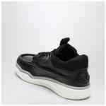 Sneakers by Valentino Garavani in black calf leather and fabric featuring a round toe with embossed stitching, lace-up fastening, Vlogo detail on tongue and back and a rubber sole.