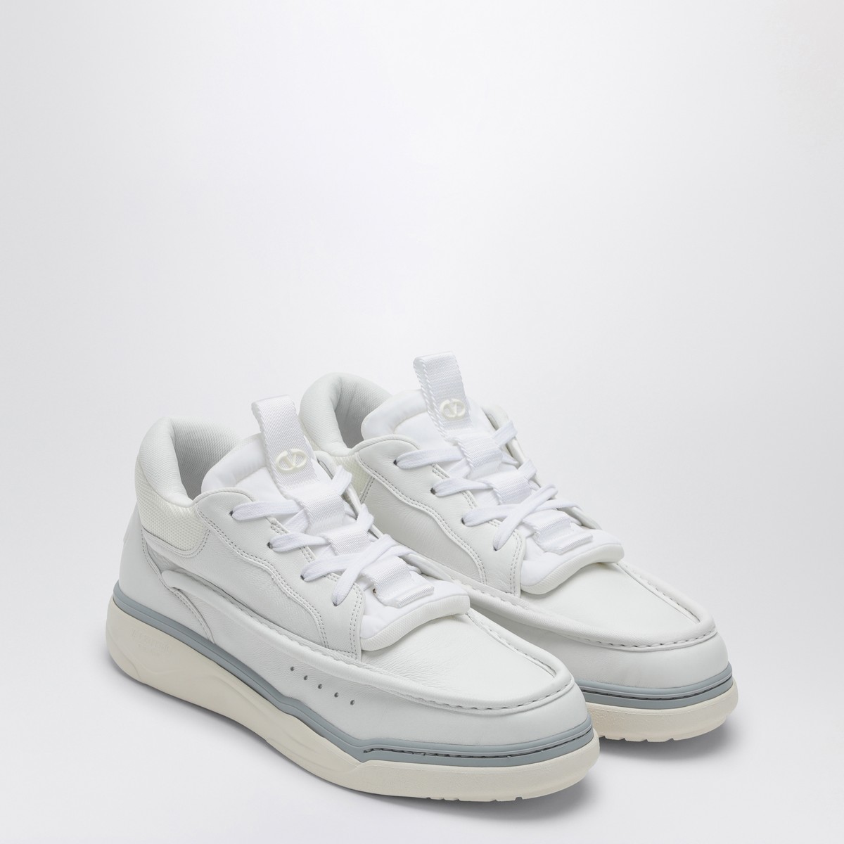 Sneakers by Valentino Garavani in white calf leather and fabric featuring a round toe with embossed stitching, lace-up fastening, Vlogo detail on tongue and back and a rubber sole.