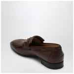 Valentino Garavani coffee-colored leather moccasin characterized by a chain with VLogo Signature accessory in antique effect brass finish, detail with fringes and leather sole.