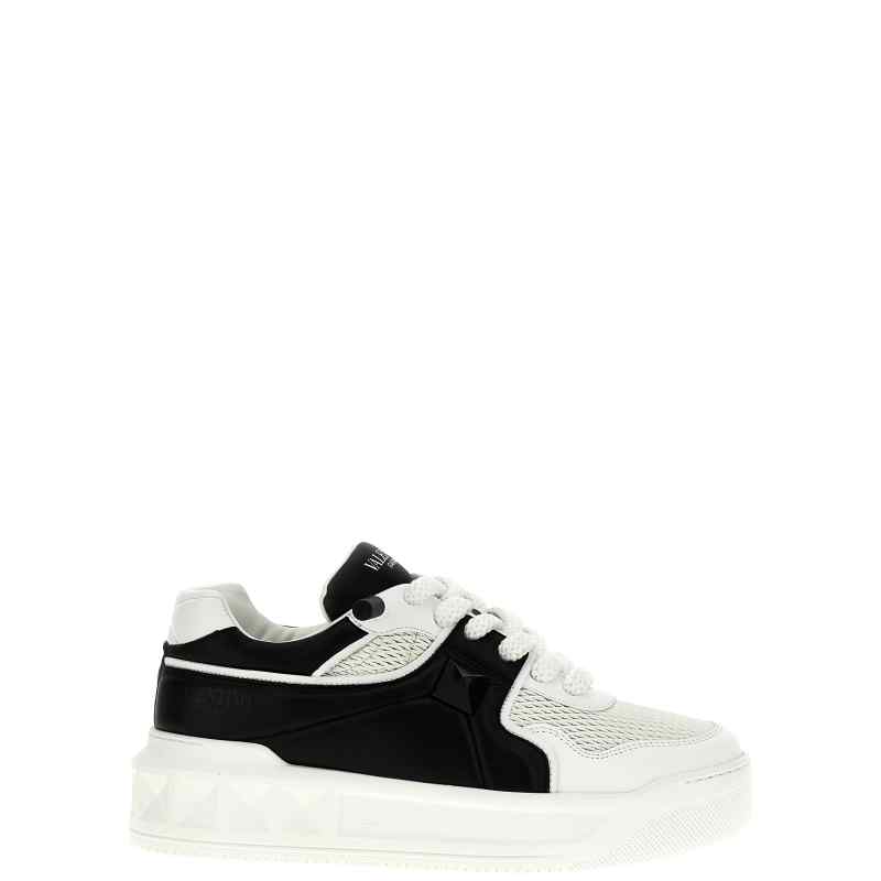 ‘one stud xl’ sneakers in two-tone nappa leather and perforated leather, Maxi stud appliqué, Printed logo tab, Laces closure, Rubber sole with bas-embossed maxi stud detail. Size and Fit – EU MEN