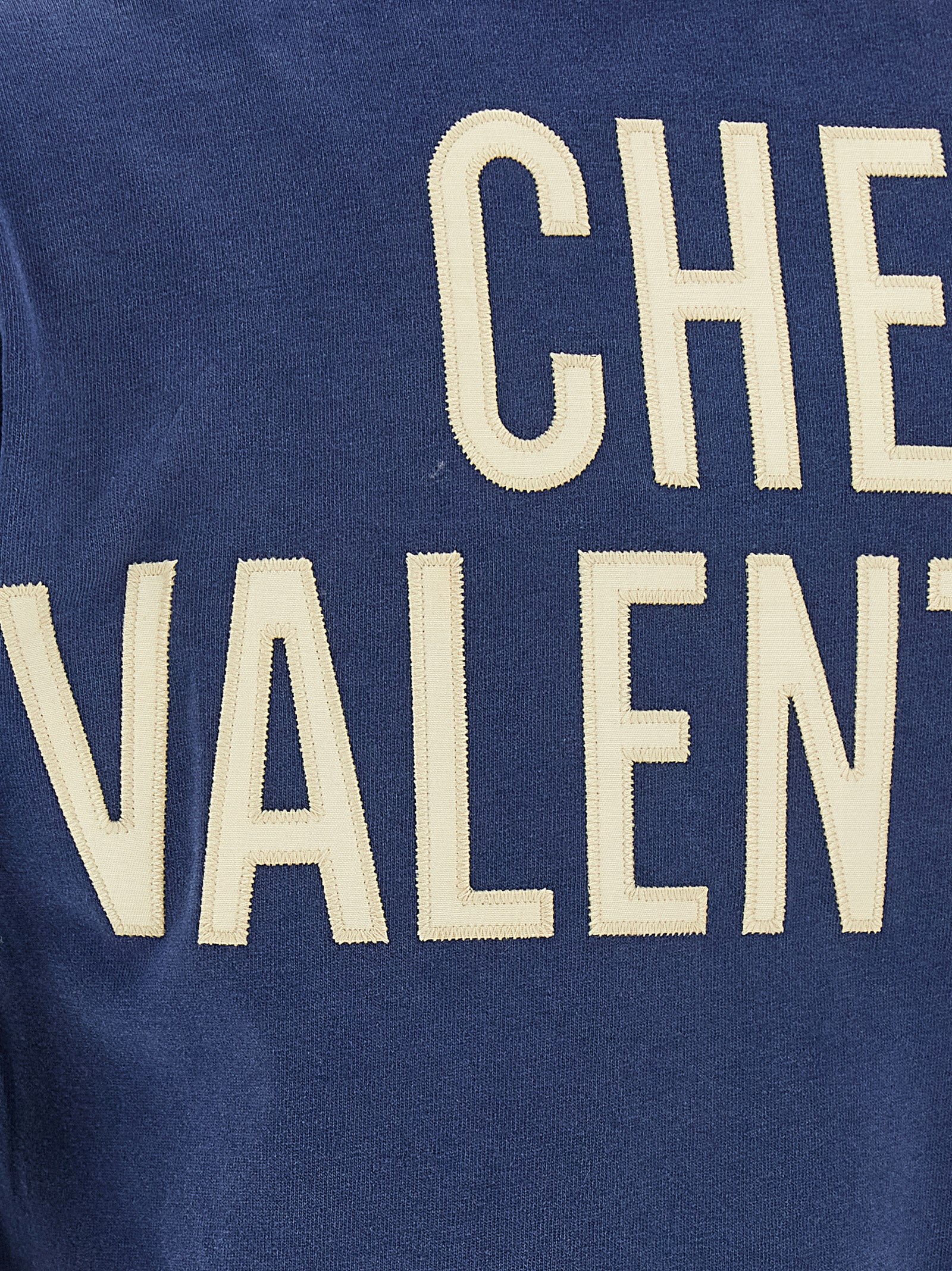Cotton jersey T-shirt with ‘Panther Lady’ print on the front craqué effect, ‘Chez Valentino’ patch on the back, crew neck, and short sleeves.