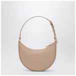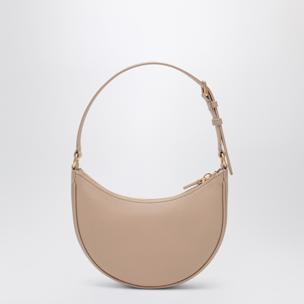 Valentino Garavani mini hobo bag in pink grained calfskin, featuring adjustable handle with buckle, zip closure and Vlogo with antique brass-finish metal hardware.