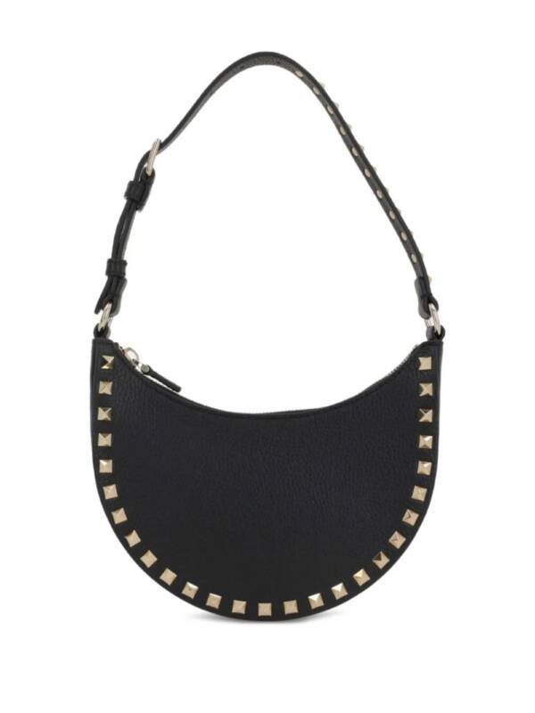 black calf leather signature Rockstud embellishment top zip fastening adjustable shoulder strap logo stamp to the front main compartment internal patch pocket internal logo stamp The full look includes accessories. Rockstud hobo mini bag. Size and Fit – DEPTH 4 cm. HEIGHT 12 cm. WIDTH 20 cm. STRAP 18 cm.