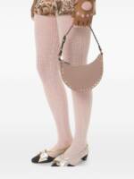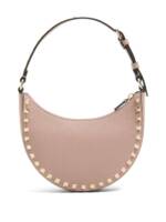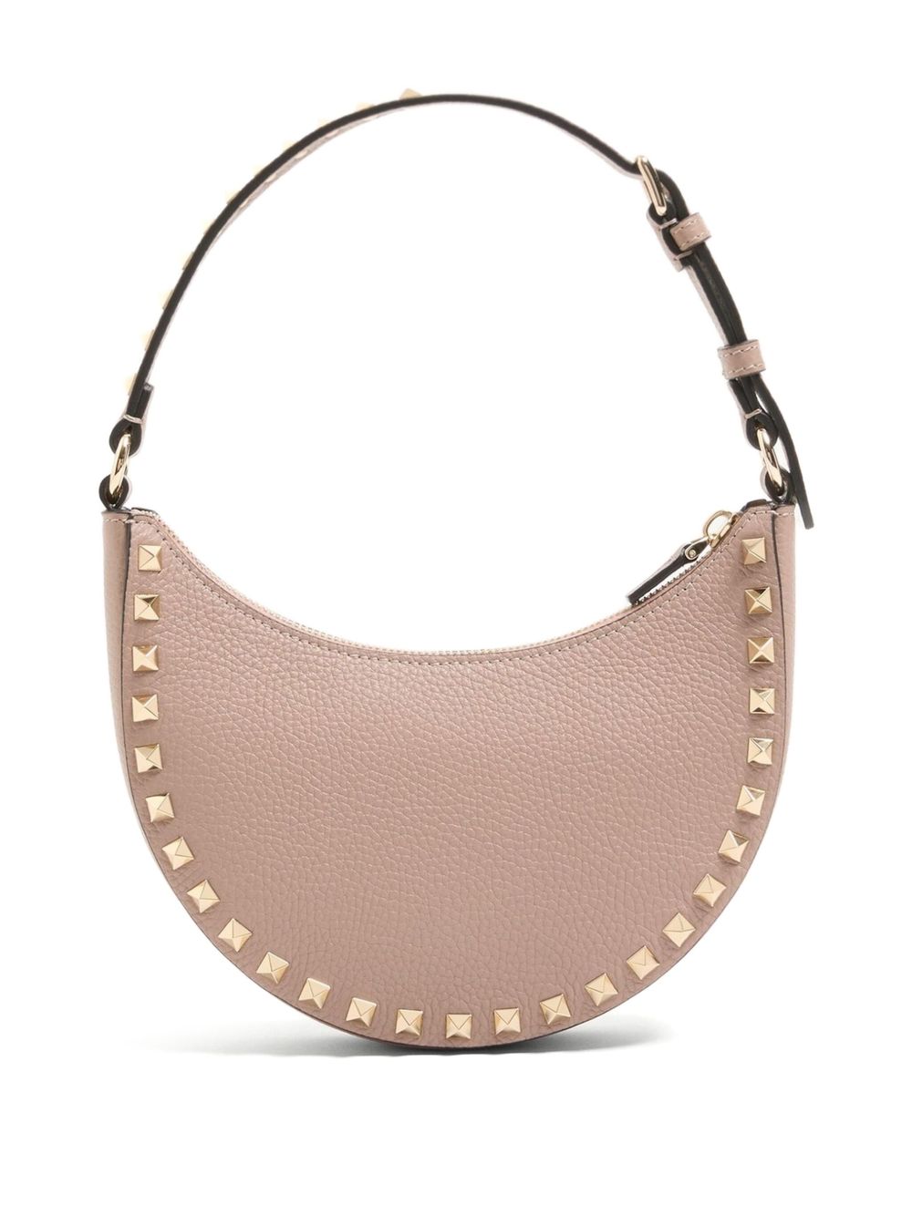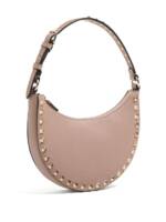 Valentino bag blush pink calf leather grained texture top zip fastening adjustable top handle gold-tone Rockstud detailing main compartment internal slip pocket The full look includes Valentino Garavani accessories. Rockstud hobo mini bag. Size and Fit – DEPTH: 4.0 Centimetres. HEIGHT: 12.0 Centimetres. WIDTH: 20.0 Centimetres.