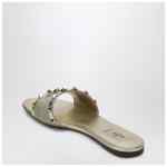 Valentino Garavani sandals in platinum metallic leather, featuring a strap with small studs, an open almond toe, and a leather sole.