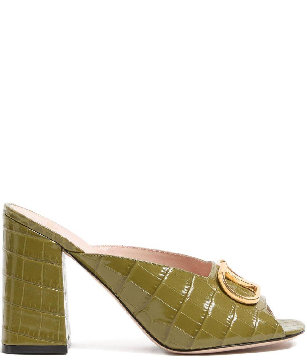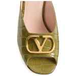 Valentino sandals olive green crocodile-effect print vlogo signature accessory block heel 95mm heel height open toe The full look includes Valentino Garavani accessories. VLogo Signature leather mules