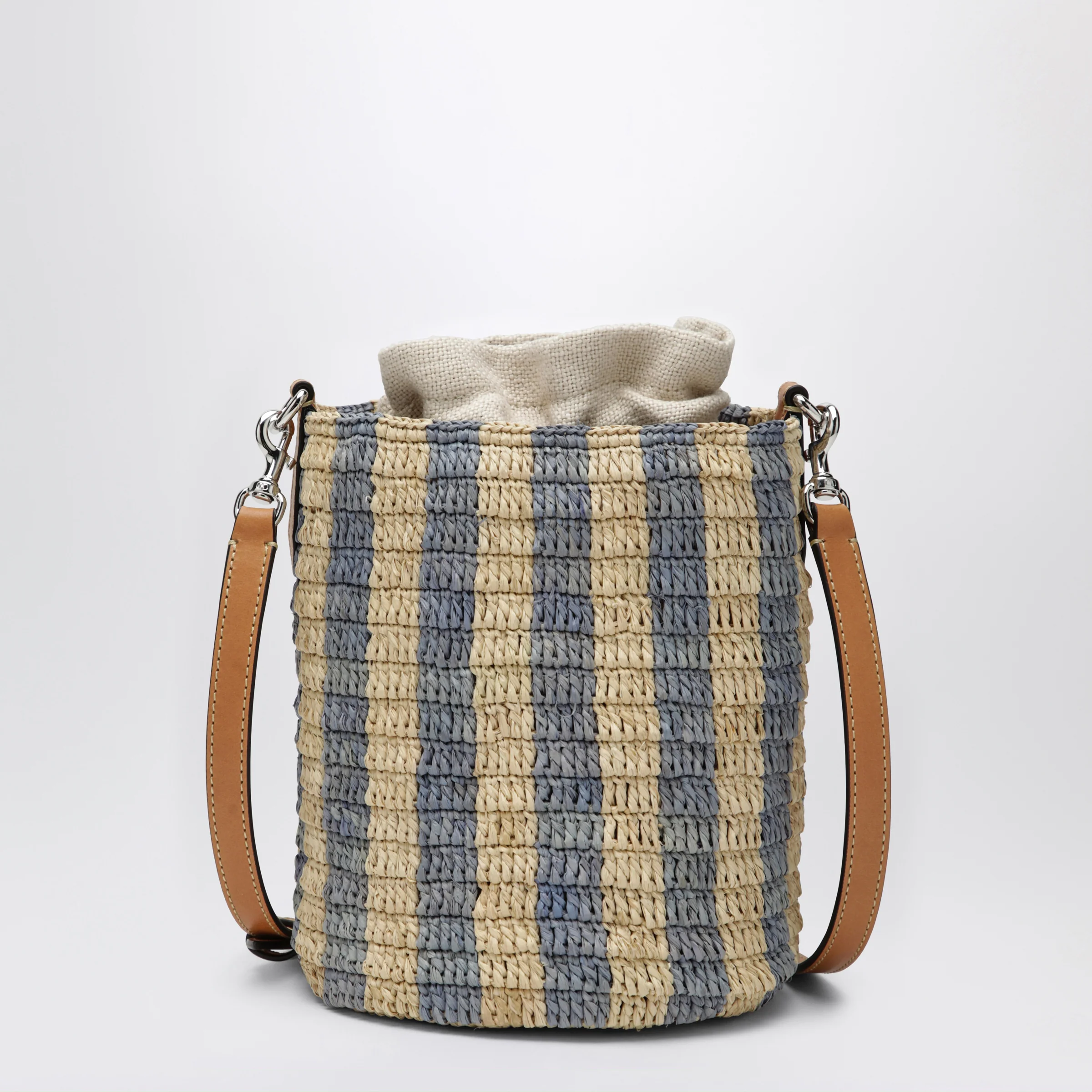 Valentino Garavani Small bucket bag in raffia with beige and light blue stripes