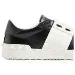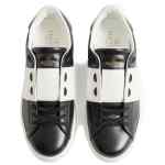 Valentino sneakers black and white leather contrast band rubber sole rear rubber studs lace-up closure The full look includes Valentino Garavani accessories. Open leather sneakers