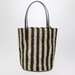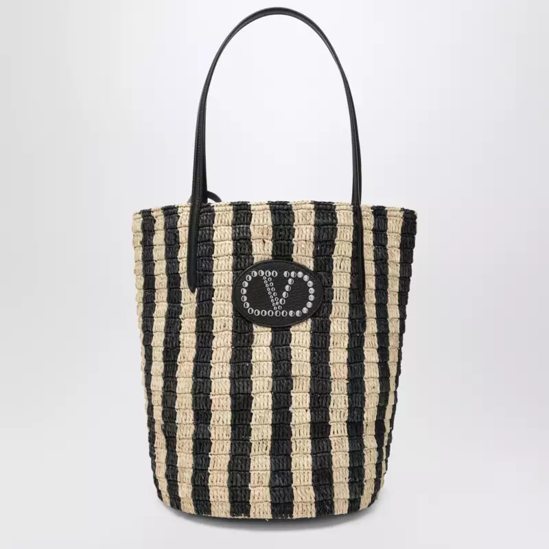 Valentino Garavani Striped shoulder bag in raffia and leather