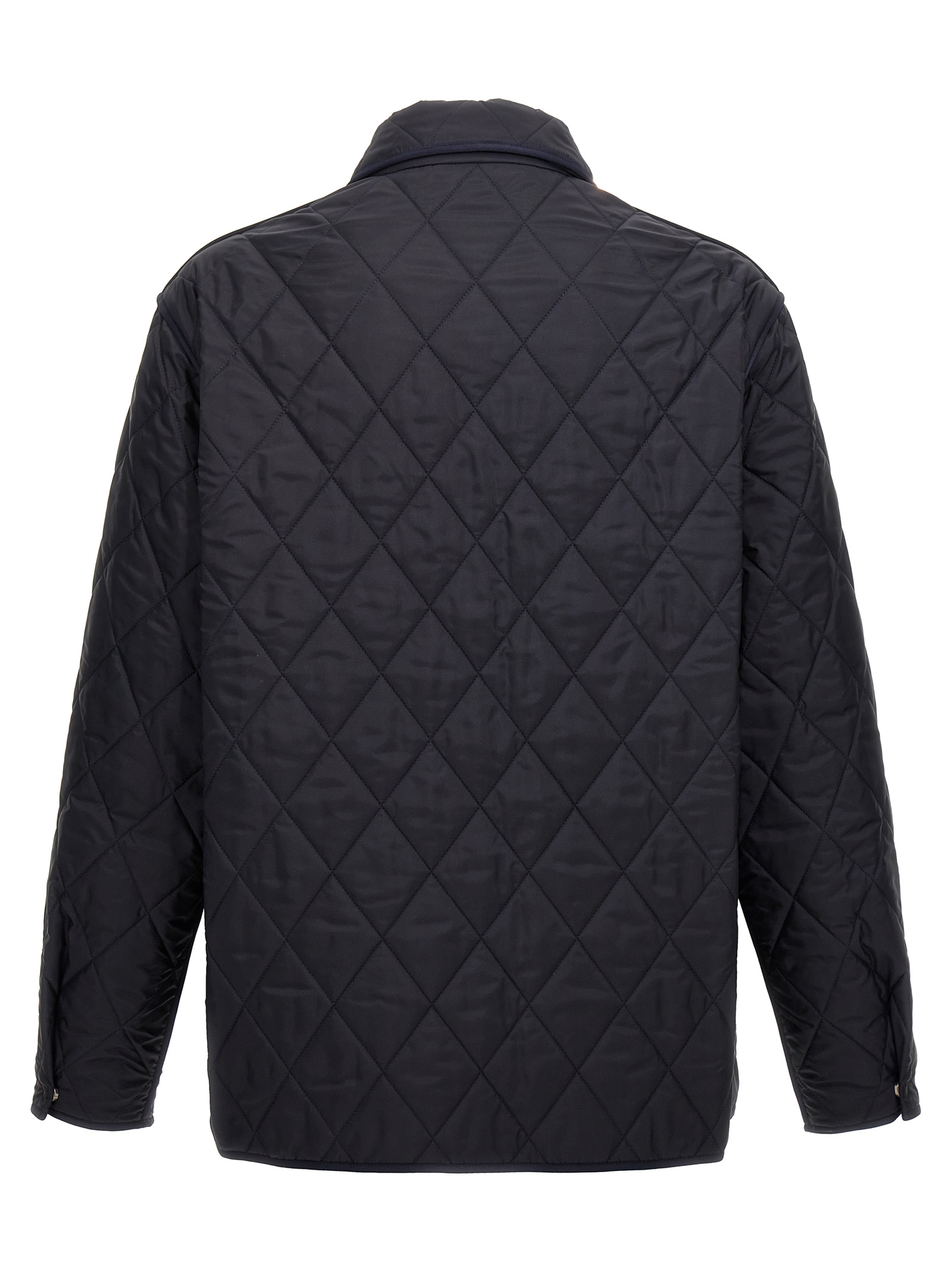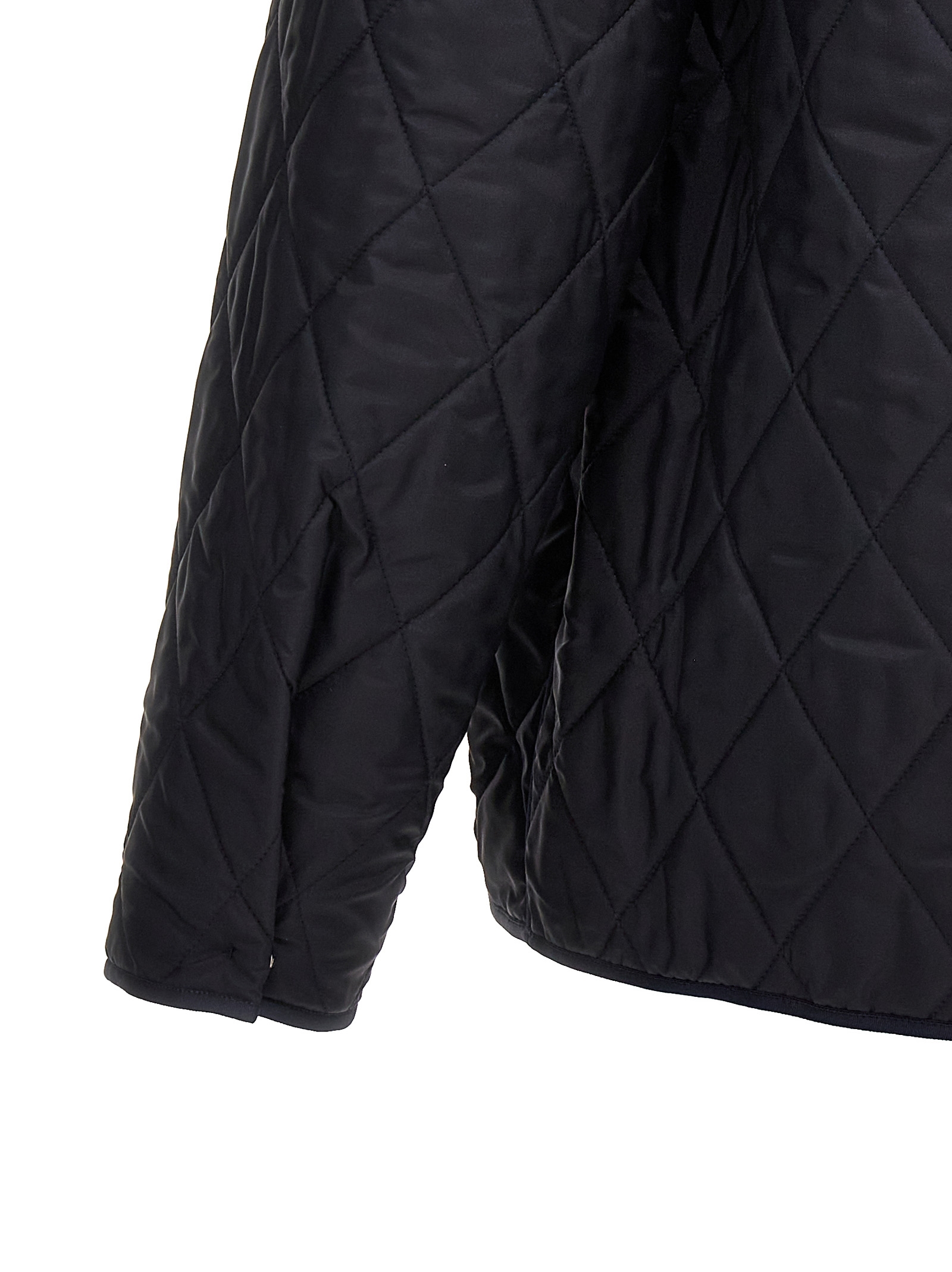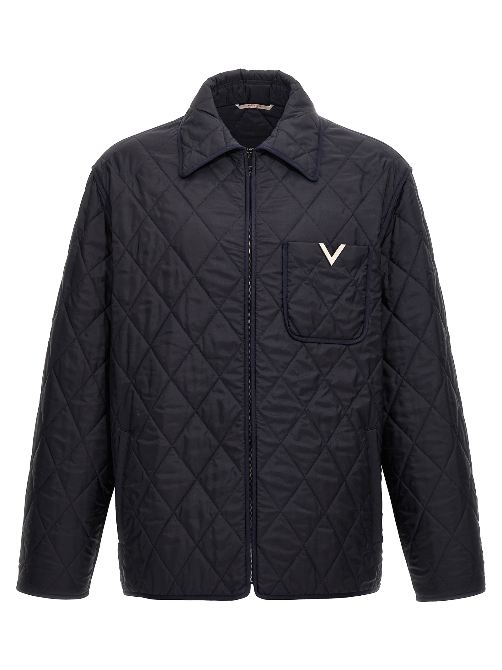 Quilted nylon jacket, zip closure, front pocket with metal ‘V Detail’, pockets, long sleeves.