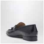 Valentino Garavani loafers in smooth black calfskin leather, featuring a suede leather insert, gold-finish metal Vlogo Signature detail with tassels, and leather sole.