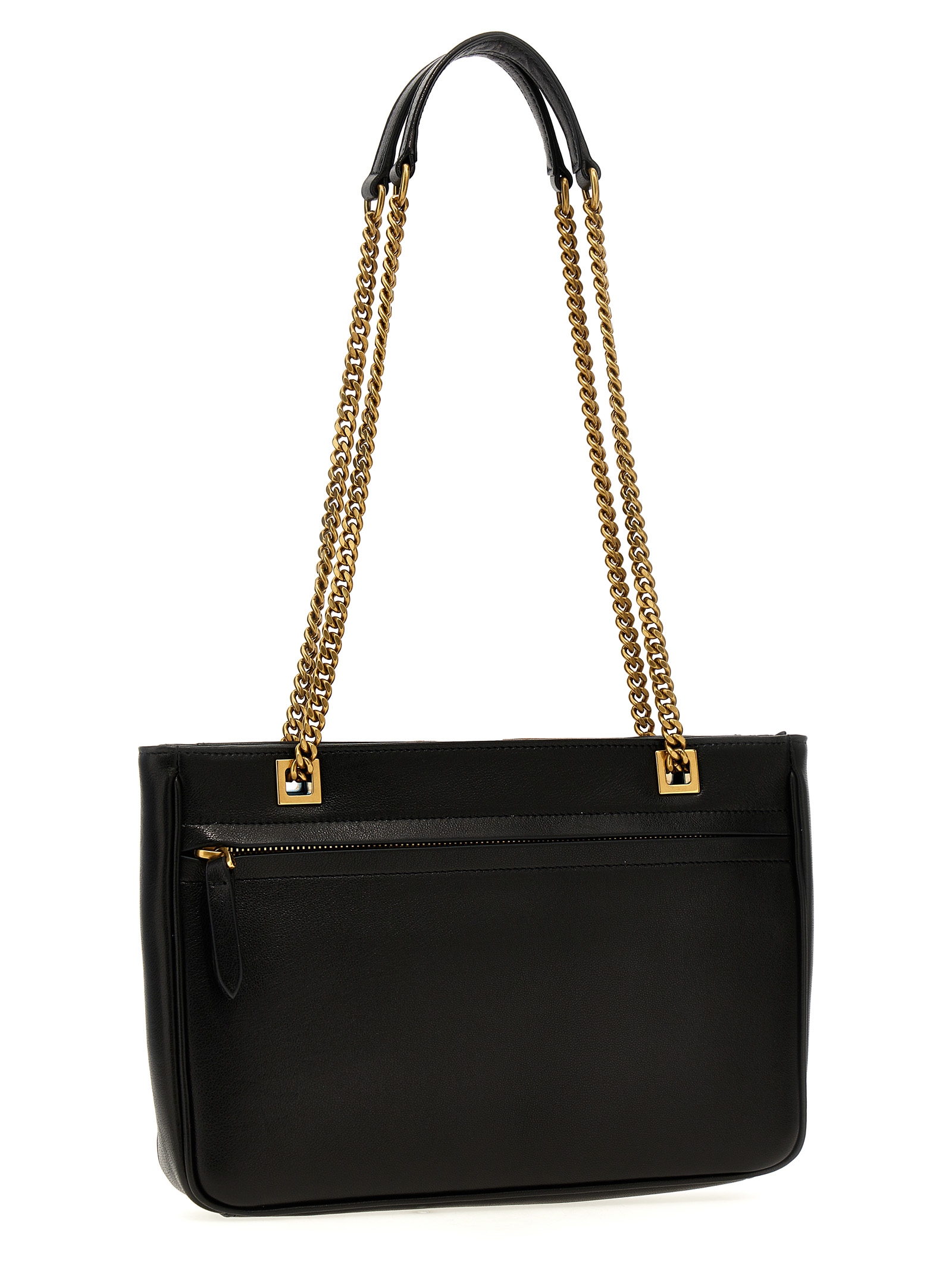 ‘Viva Superstar’ small nappa leather shopping bag with contrasting Signature maxi VLogo, double sliding leather and chain handles, zipper closure, outside pocket.